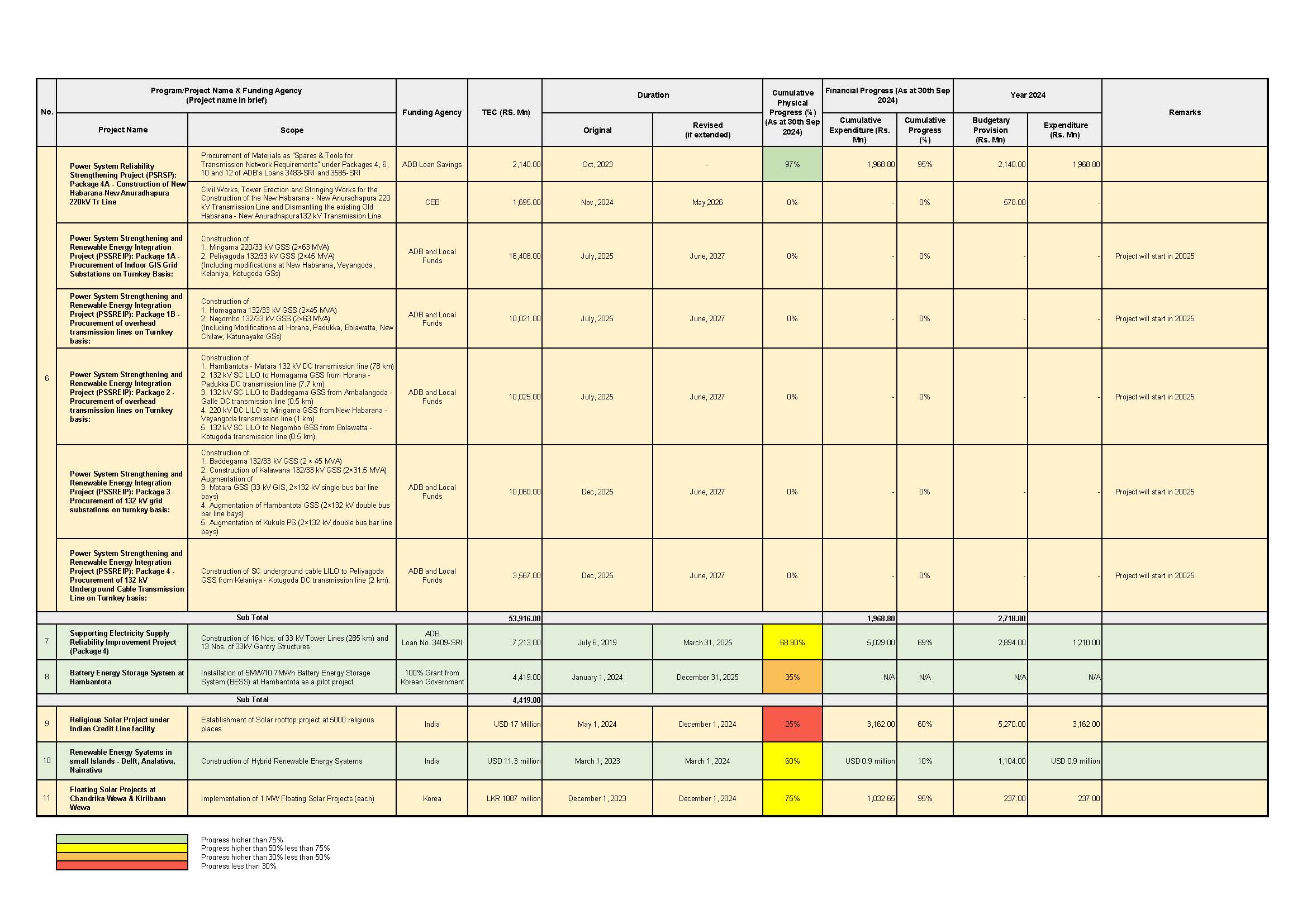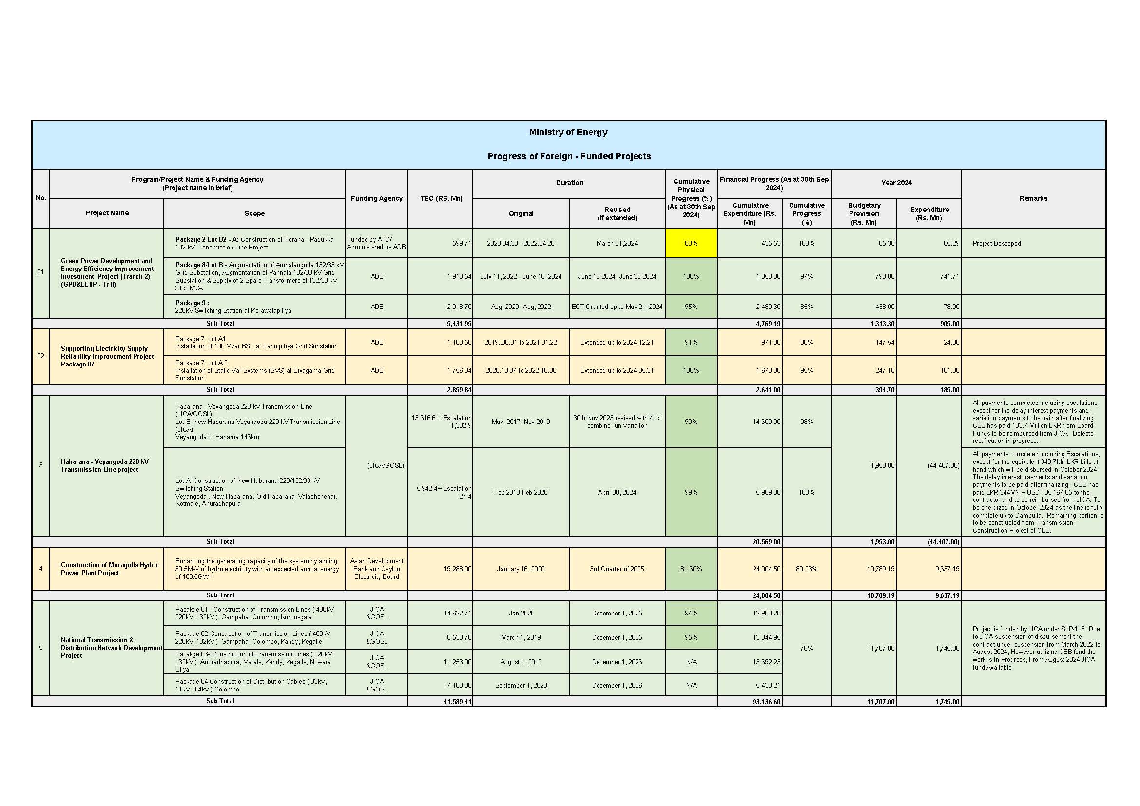 நிகழ்கால கருத்திட்டங்கள் - மின்வலு அமைச்சு